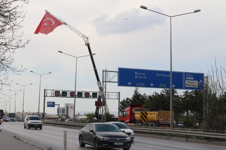 Odunpazarı ilçesi 71 Evler Mahallesi’nde vinç kiralama işi yapan olan bir işletmeci, her milli bayramda geleneksel şekilde 200 tonluk en büyük vincine, 10 metreye 15 metre ebatlarında dev bir Türk bayrağı asıyor. Yaklaşık 43 metre yükseğe astığı bayrak, Eskişehir girişi sayılabilecek olan bir noktada, çevreyolu üzerinde dalgalanıyor.